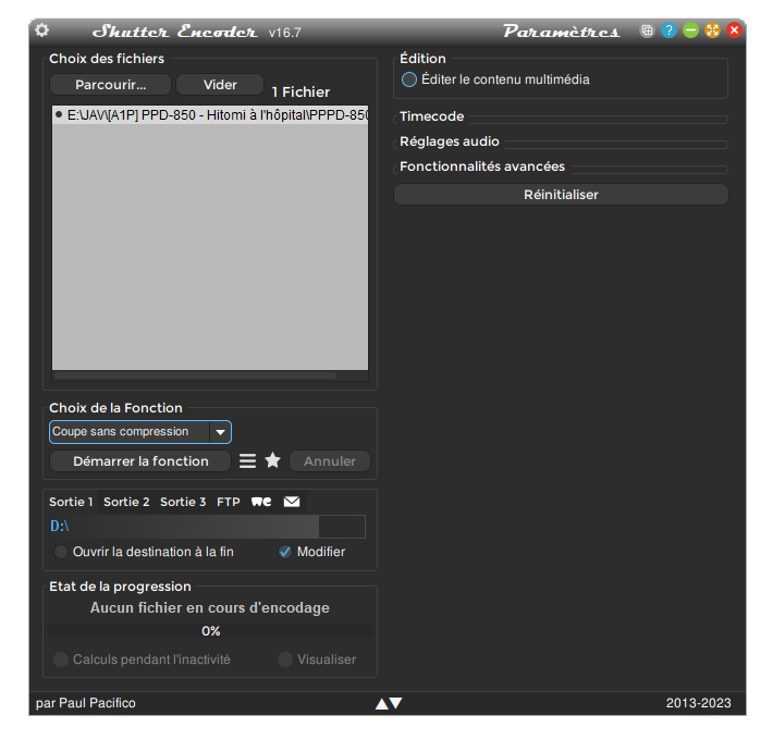 • Le fichier sera ensuite disponible dans le répertoire indiqué sous Sortie 1 (en-dessous de Démarrer la fonction).