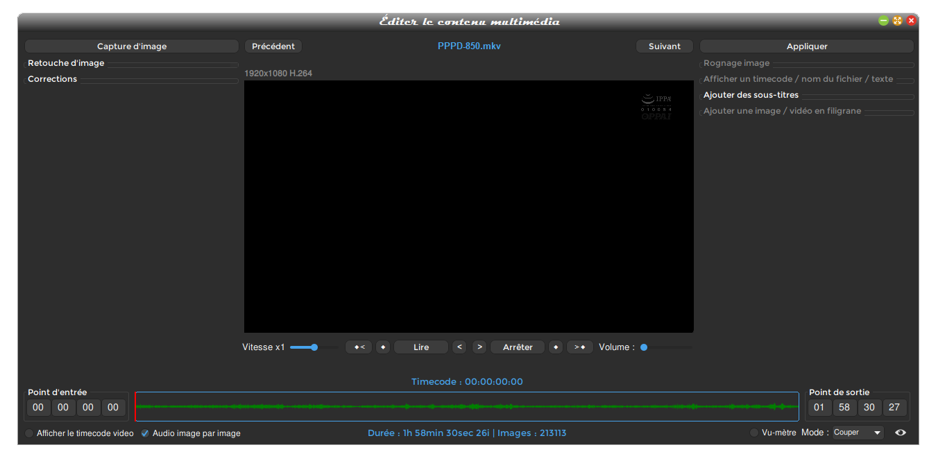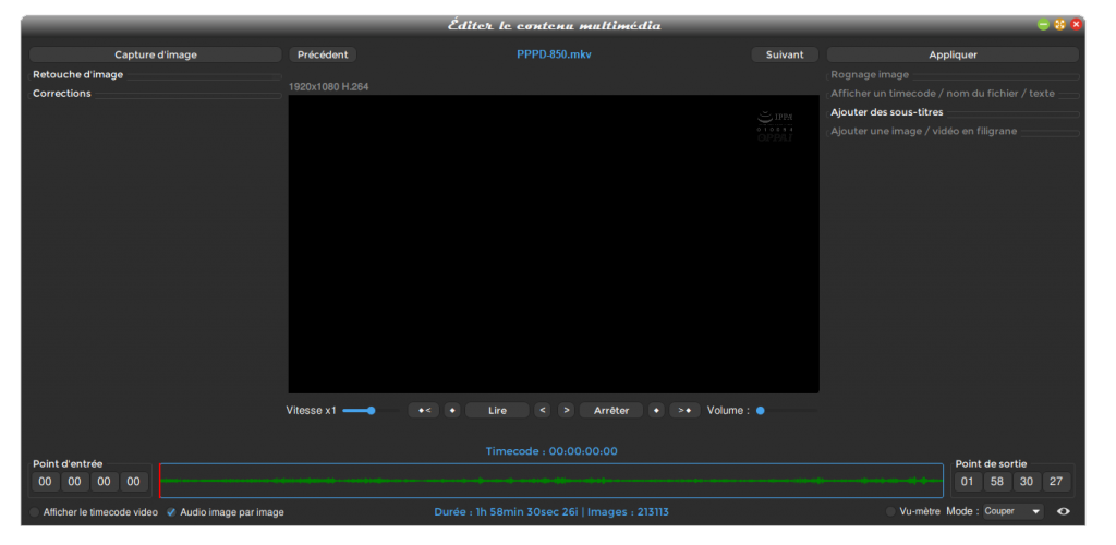 D’autres fonctionnalités sont disponibles comme le remplacement de la piste audio, l’extraction (audio, vidéo, sous-titres), le sous-titrage et l’insertion de vidéo.